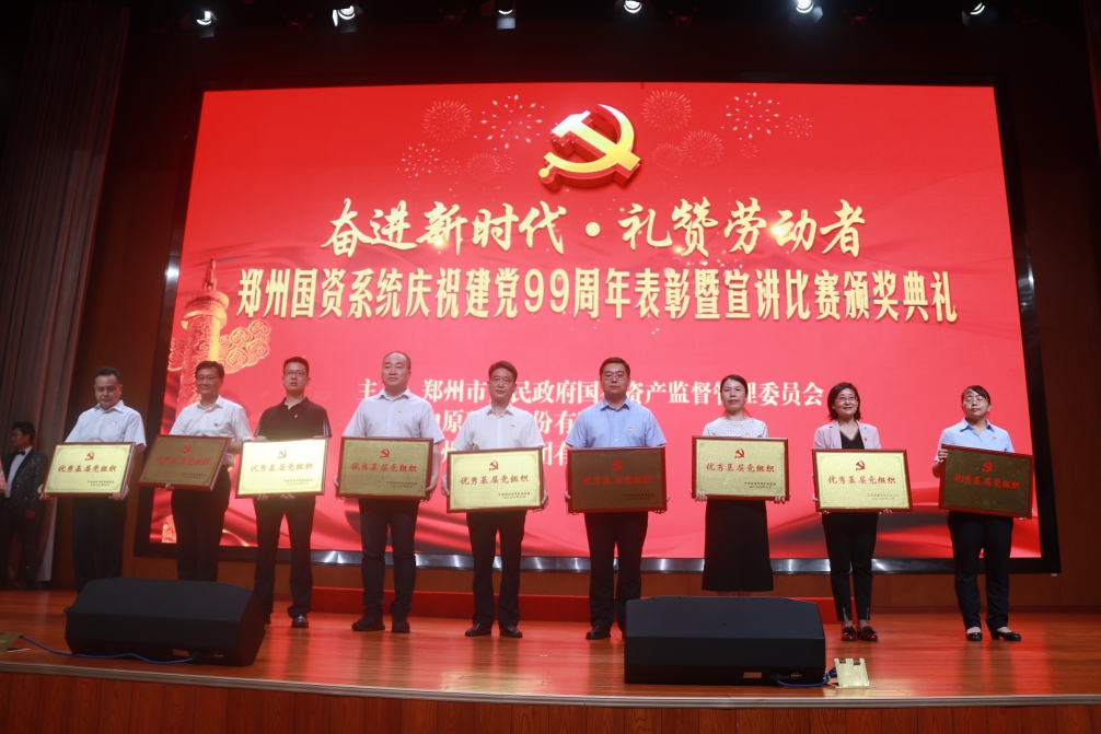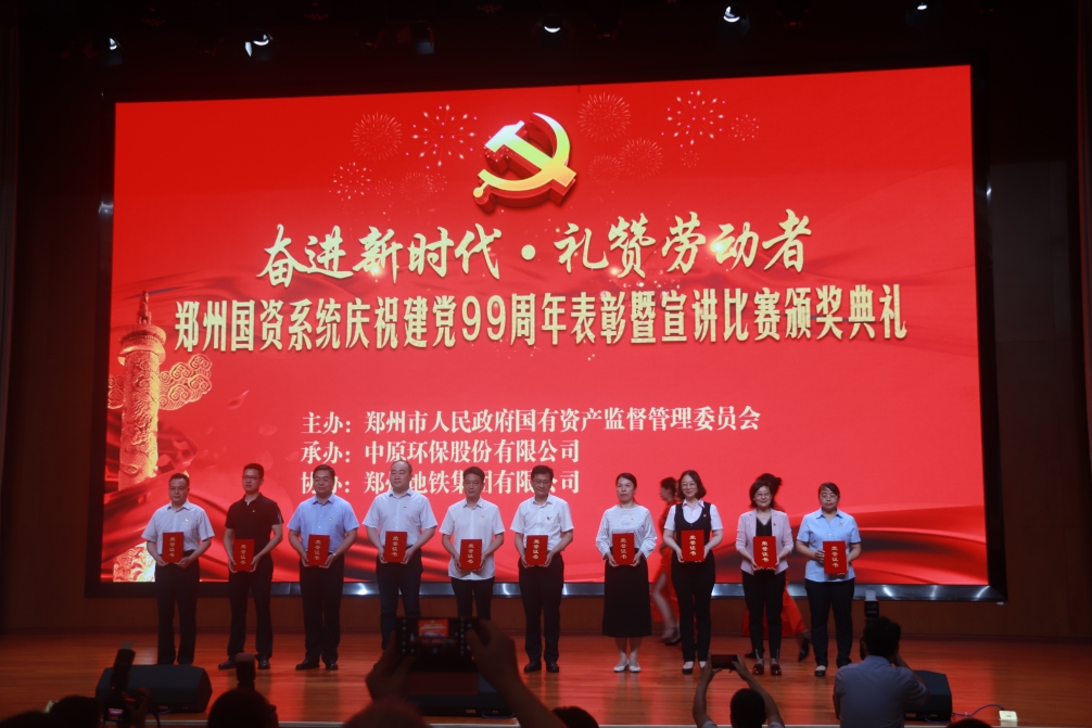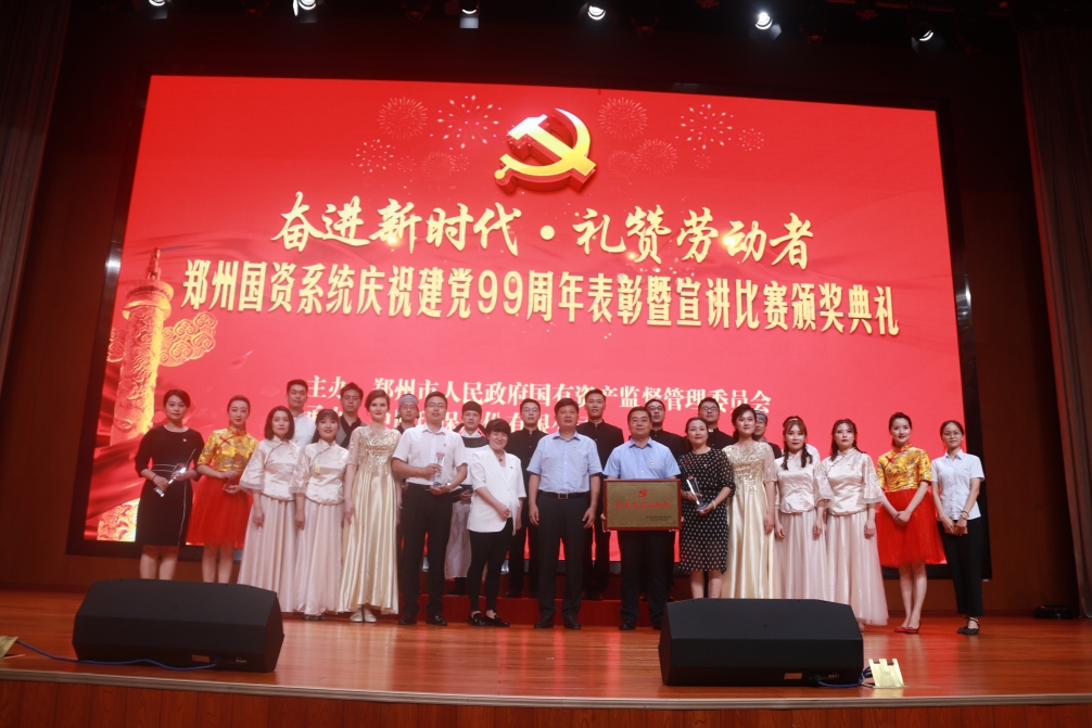 為慶祝中國(guó)共產(chǎn)黨成立99周年,重溫黨的光輝歷程,傳承黨的優(yōu)良傳統(tǒng),6月30日下午,鄭州市國(guó)資委舉行“奮進(jìn)新時(shí)代·禮贊勞動(dòng)者”——鄭州國(guó)資系統(tǒng)慶祝建黨99周年表彰暨宣講比賽頒獎(jiǎng)典禮,集團(tuán)黨委書記、董事長(zhǎng)萬(wàn)永生,監(jiān)事會(huì)主席李靜波,以及集團(tuán)優(yōu)秀基層黨組織、優(yōu)秀共產(chǎn)黨員、優(yōu)秀基層代表、獲獎(jiǎng)節(jié)目代表等共計(jì)20余人參加此次頒獎(jiǎng)典禮。
