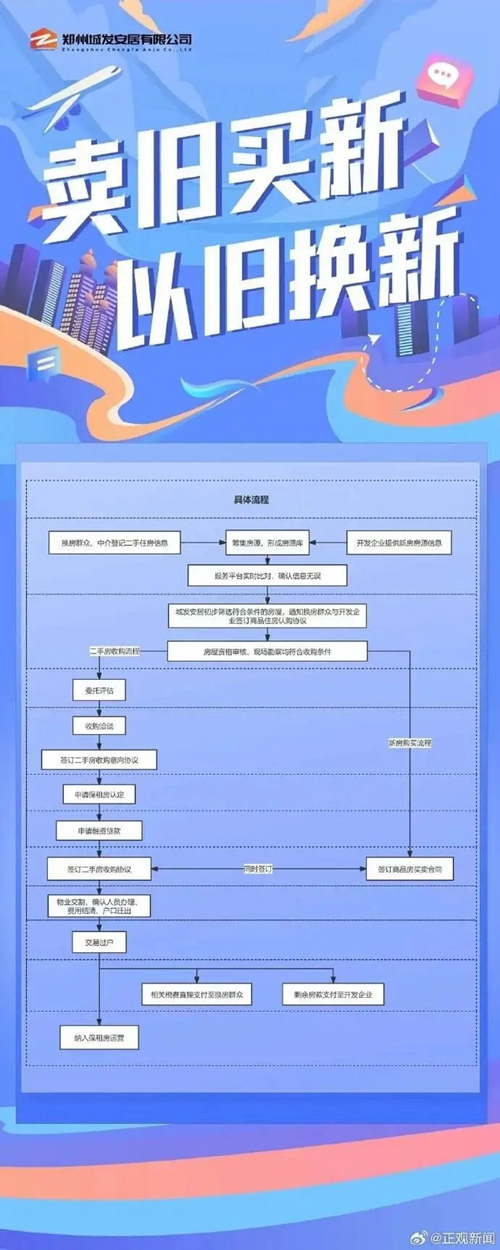 鄭州房產(chǎn)市場(chǎng)“賣(mài)舊買(mǎi)新、以舊換新”旨在滿(mǎn)足群眾改善性住房需求。具體來(lái)講,由政府指定收購(gòu)主體—鄭州城市發(fā)展集團(tuán)有限公司與具有改善需求的換房群眾進(jìn)行洽談,通過(guò)價(jià)格評(píng)估、銀行貸款等一系列工作流程,收購(gòu)群眾二手房源,為群眾購(gòu)買(mǎi)新房提供資金支持,暢通買(mǎi)賣(mài)渠道。此外,群眾也可通過(guò)市場(chǎng)化方式進(jìn)行交易。