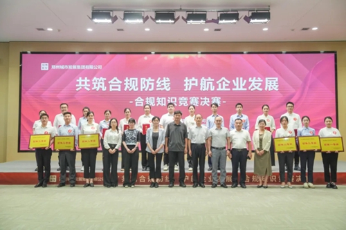 為貫徹落實習近平法治思想,奮力開創法治國企建設新局面,8月30日,集團在金岱科創城商務服務中心舉辦“共筑合規防線、護航企業發展”合規知識競賽決賽。鄭州市國資委二級調研員劉學銀、法規處處長文鋒,集團黨委書記、董事長萬永生,集團領導張華,城發產城董事長、總經理吉獻亮等領導出席本次活動。