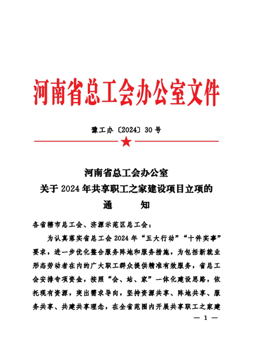 近日,河南省總工會發布《關于2024年共享職工之家建設項目立項的通知》,決定對城發金岱智慧產業園共享職工之家等32個共享職工之家建設項目進行立項,并對城發金岱智慧產業園共享職工之家給予資金補助,鄭州市僅有三家職工之家獲得立項,這是城發金岱智慧產業園共享職工之家建設運營后取得的第一份殊榮。