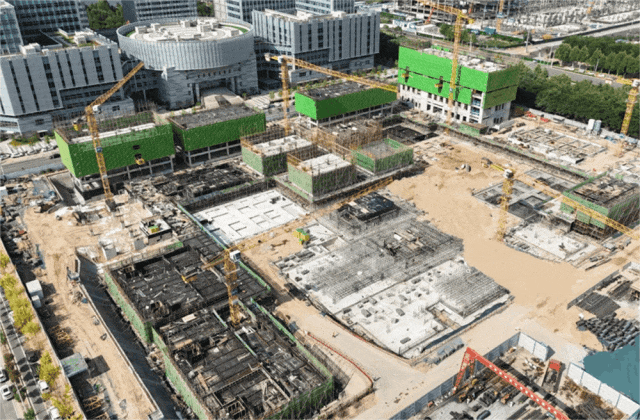 五月的城發·高新生物經濟產業園,塔吊繁忙運轉、機械設備轟鳴不斷,工人們有條不紊地進行施工作業,項目建設現場到處一派熱火朝天的繁忙景象。其中,項目一期的主樓工程基本完成,室外配套管網、景觀正在施工中;項目三期的土方、樁基已完成,正在交叉推進正負零和主體施工,部分樓棟已施工至六層。