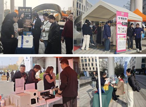 本次展銷會吸引了園區20余家優質企業踴躍參與,涵蓋服裝服飾、日用百貨、智能科技、生活服務等多個領域。從潮流女裝到智能設備,從眼鏡驗配到園區餐飲,琳瑯滿目的展品背后,是園區企業“不出園,即可對接資源”的生態優勢。